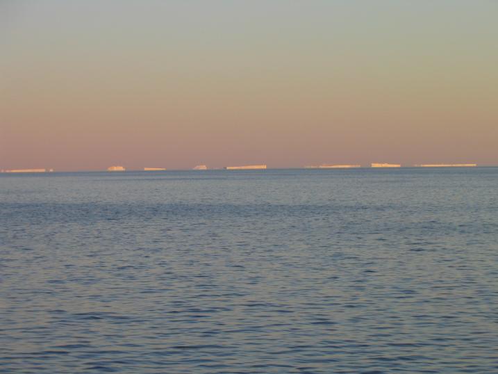 Figure 1: Icebergs in the horizon on the East Greenland shelf