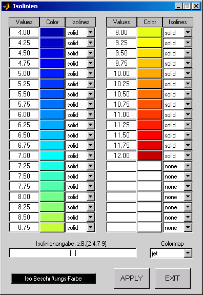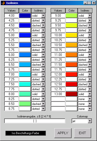 the values for the desired isoline(s). The third has to be set