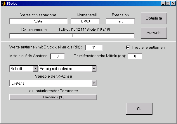 In the box of Werte entfernen mit Druck kleiner als (db) one can choose to