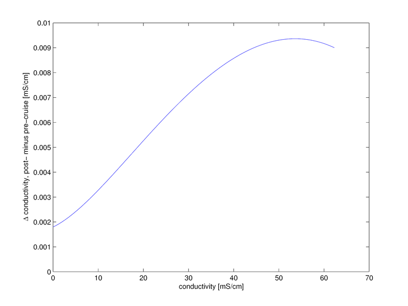 Figure 1: Conductivity difference between pre- and post cruise calibration of the CTD.